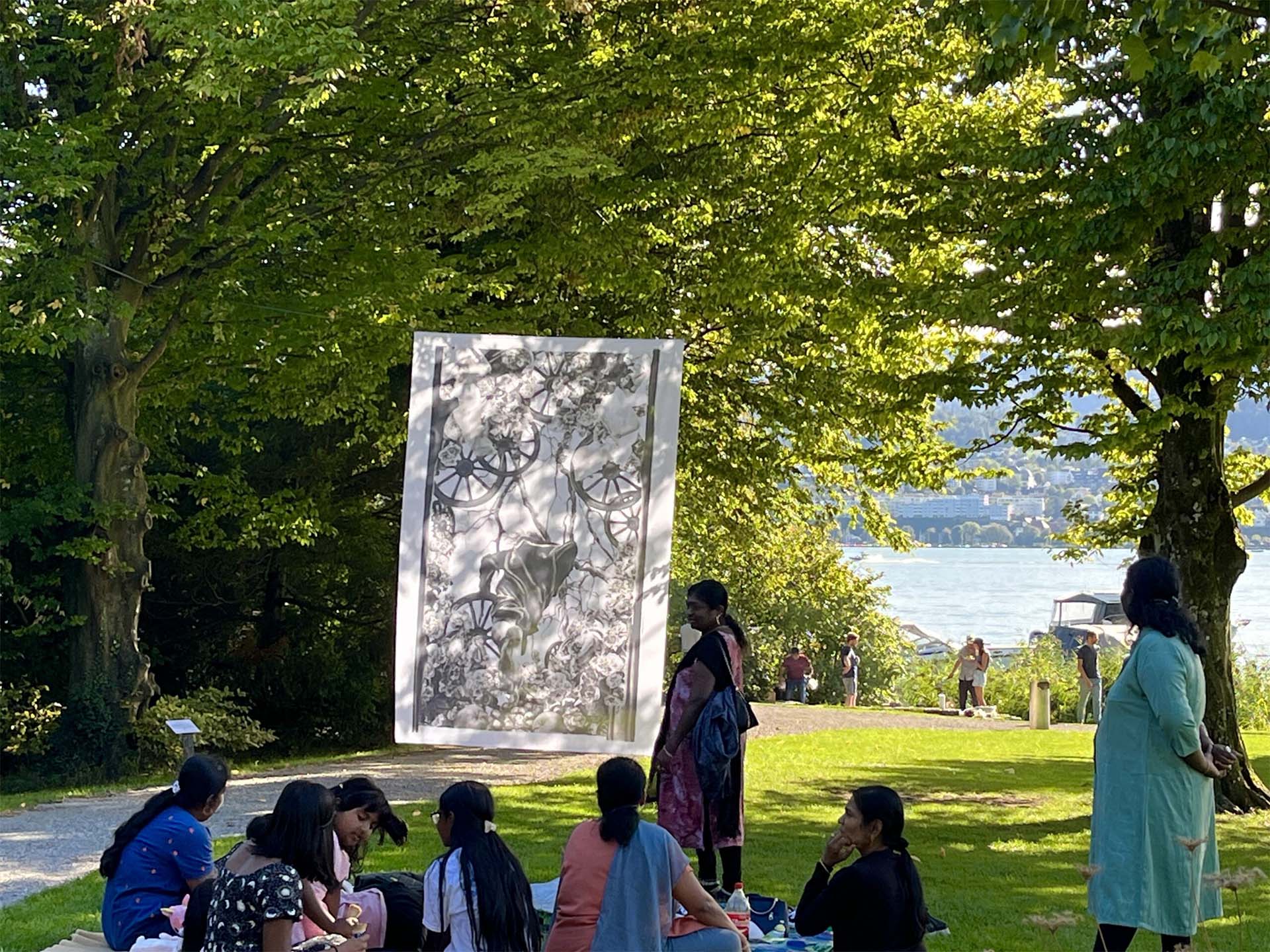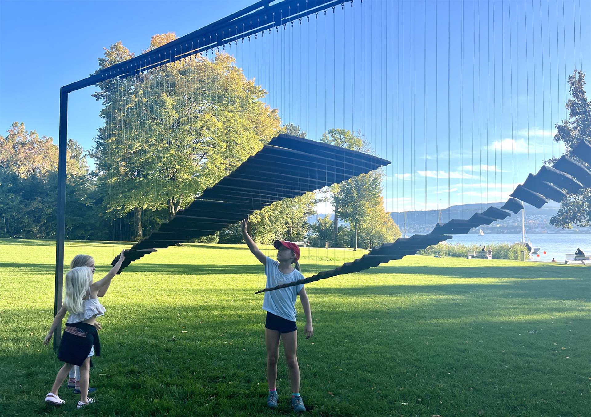 Der malerische Rössli-Park am Seeufer ist ein Ort der Ruhe und wird durch die Präsenz von Kunstwerken zu einem Raum der Begegnung und des spontanen Austauschs.
